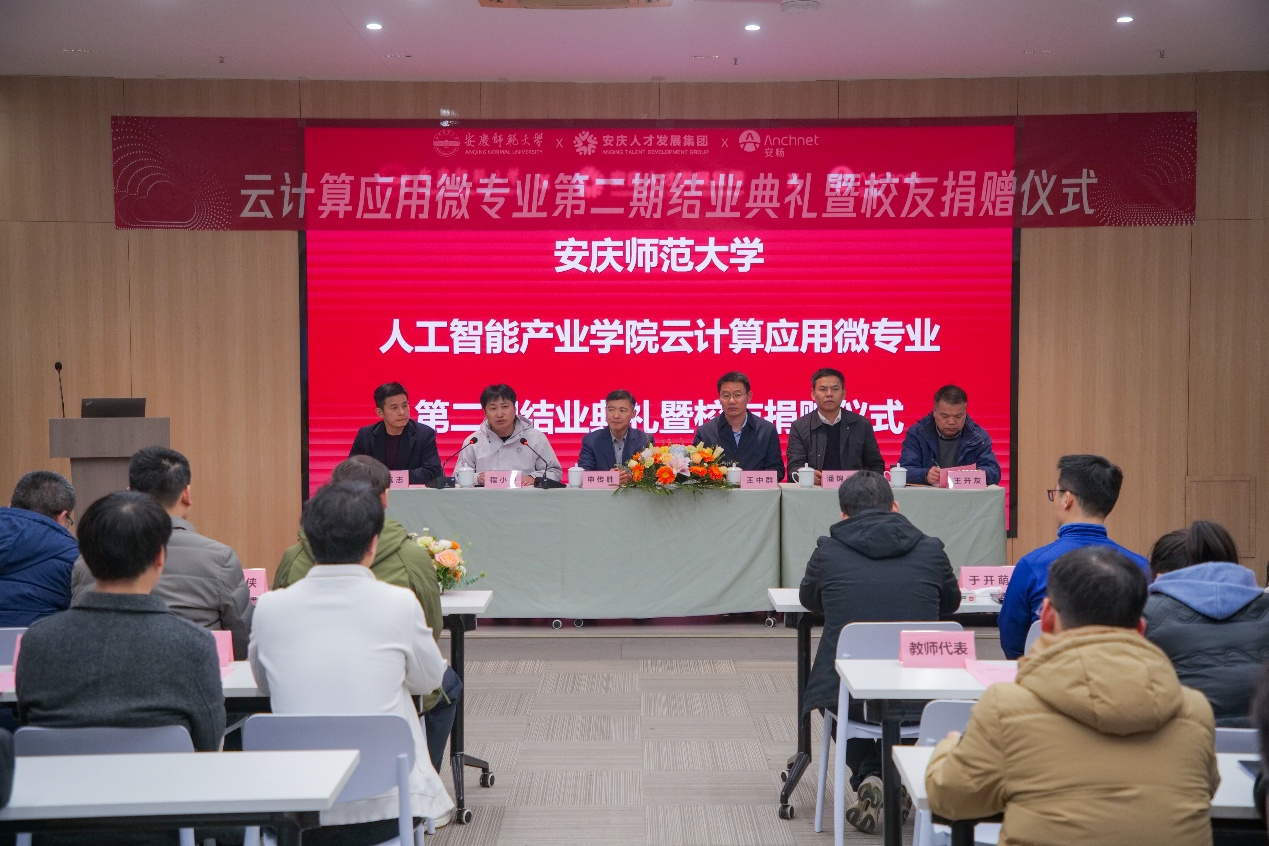 12月19日,学校在筑梦产业园隆重举行“云计算应用”微专业第二期结业典礼暨校友捐赠仪式。校党委常委、副校长申传胜出席活动。安庆市人才发展集团党委书记、董事长王中群,安畅集团总裁程…