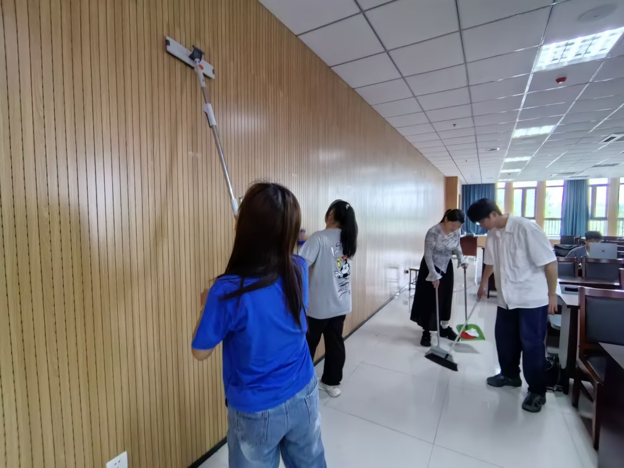 活动期间,各班级以“主题教育+实践育人”双轮驱动模式,将劳动教育与专业特色、校园文化深度融合。各班积极召开主题班会,组织学生集中观看《大国工匠》等纪录片,通过影像资料感受劳动模范的奋斗历程与工匠精神,激发同学们对劳动的热爱与敬畏。邹启晔老师的带领下,2023级计算机科学与技术3、4班创新开展“青春助力校园美 劳动淬炼品格坚”主题实践,通过规范自行车停放秩序活动,让校园停车区域的自行车摆放整齐焕发整洁新貌2024级计算机类2、3班以“以‘劳’铸魂启新程,以‘动’筑梦践初心”为主题,组建“校园美容师”志愿服务队,对操场周边区域进行深度清洁,用实际行动诠释“劳动最光荣”的时代内涵2024级计算机类12班则聚焦“劳动创造美好环境”,开展学院卫生大扫除,打造安全整洁的科研育人空间。