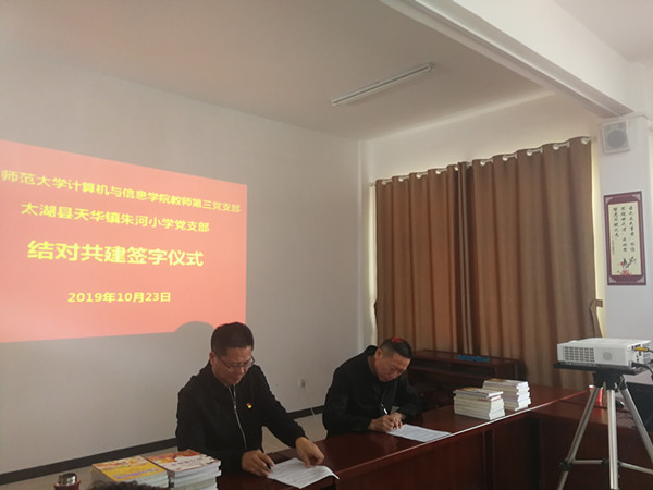 10月23日,bat365中文官方网站教师第三党支部组织支部成员来到太湖县西冲村,在支部驻村第一书记的组织下,支部一行与西冲村朱河小学党支部召开了结对共建签约仪式会议。会上,各支部书记分别介绍了本支部的基本情况和双方结对的前期工作,支部成员进行了充分交流,双方签订了支部共建协议;随后学院教师第三党支部在马庙小学前期阅读调研的基础上,开展了捐赠图书和慰问贫困生活动,得到受助学校师生的热烈欢迎与感谢;接着结对支部成员共同瞻仰了马庙烈士墓,在现场重温了入党誓词,集体进行了革命传统教育。随后,学院教师第三党支部邀请了太湖县委党校常务副校长查达峰上了一堂题为《聚焦发展、精准施策,决战太湖脱贫攻坚》的生动党课,让支部党员对太湖县的尤其是西冲村的贫困情况以及扶贫工作有了更深入的了解,感受到了广大奋战在脱贫攻坚第一线的干部群众的干事热情和浓厚的家国情怀,进一步理解了国家关于扶贫工作的相关政策,增强党员的责任感与使命感。