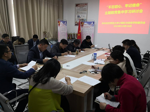 10月16日下午,bat365中文官方网站在稼先楼一楼会议室召开全体党员大会,开展“不忘初心、牢记使命”主题教育集体学习研讨,会议由该院党委书记陈银凤主持。