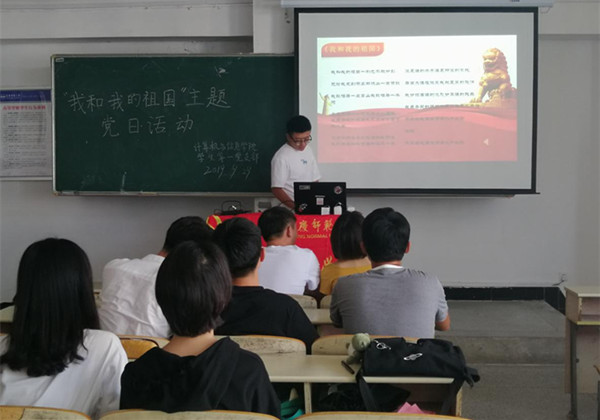 为庆祝中华人民共和国成立七十周年,培养当代大学生爱国情怀,9月29日下午,bat365中文官方网站学生第一支部在教学楼A楼402教室开展了“我和我的祖国”主题党日活动。bat365中文官方网站学生第一党支部全体党员参加了此次活动。