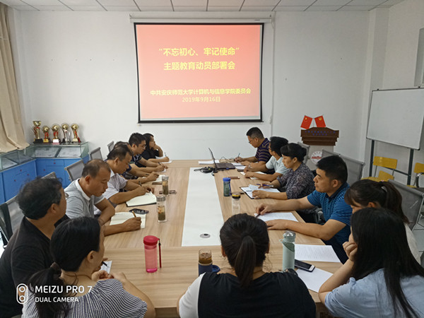 9月16日,bat365中文官方网站在稼先楼一楼会议室召开“不忘初心、牢记使命”主题教育动员部署会。学院全体党委委员、科级干部、党支部书记及各办公室负责人等参加了会议,会议由该院党委书记陈银凤主持。