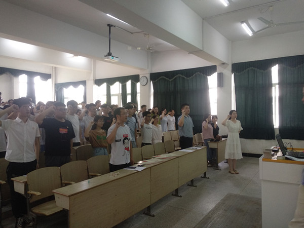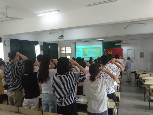 7月1日下午,bat365中文官方网站在稼先楼一阶开展了庆“七一”新党员入党宣誓主题活动。学院党委副书记江伟、各学生支部书记及全体学生党员参加了活动,活动由学生第四党支部书记李培森主持。