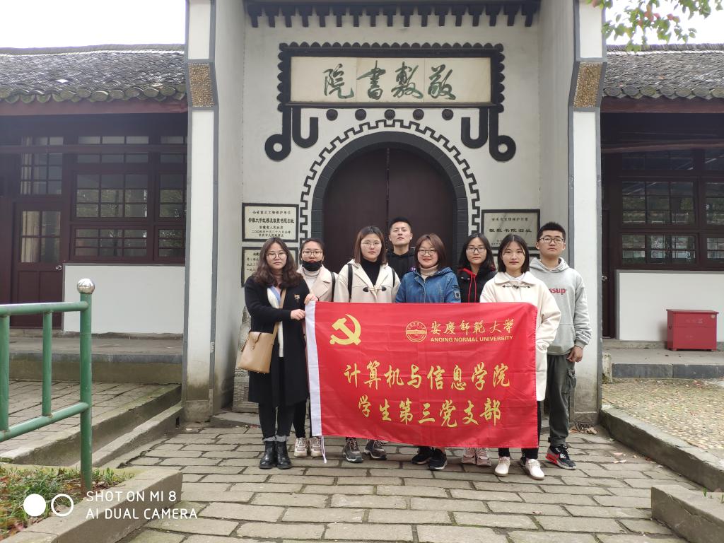 2019年3月22日bat365中文官方网站学生第三党支部赴敬敷书院、红楼和邓石如碑馆开展党日活动。阳春三月,草长莺飞,古朴静谧的敬敷书院在和煦的春风中焕发出青春的活力。走在安静的小径里,看着简陋又不失庄严的古代校舍,一位位治学严谨的古代学者在教室里讲学授课的场景仿佛浮现在眼前。