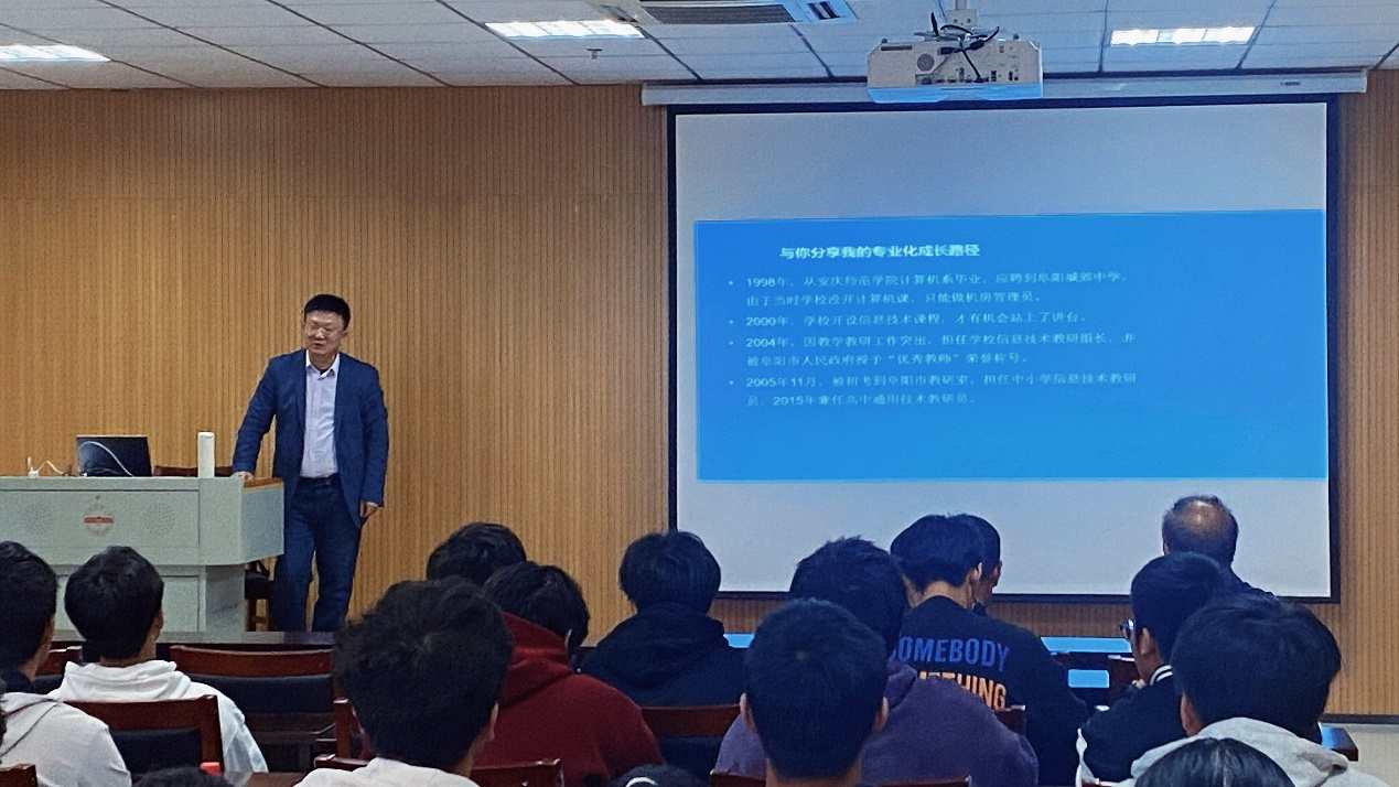冯士海以“人工智能与未来职业规划”为主题,从人工智能的发展趋势入手,分析了人工智能对生产生活方式和学习模式的深刻影响。他指出,随着人工智能技术的不断渗透,许多传统职业正面临被智能机器人取代的风险。在此背景下,职业规划变得尤为重要。他结合自身经验,从为什么需要进行职业规划和如何实现专业化成长两个方面进行了深入讲解,为在场的同学提供了宝贵的建议和指导。