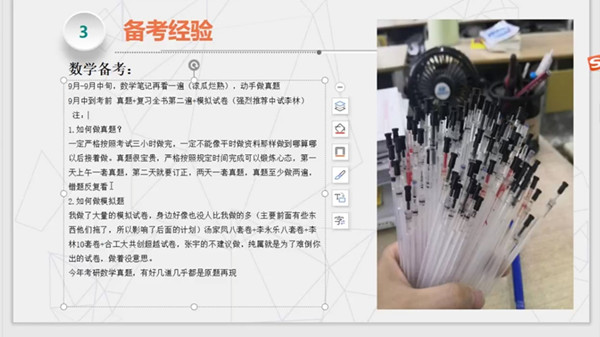 在线上问答环节,在线同学们积极提问,就专业院校选择、复习策略、时间安排等具体问题与考研同学进行了交流,三位同学都一一详细解答,再次强调“基础”和“心态”的重要性。会后学院团学组织还建立了2021届考研QQ交流群,营造良好的考研备战氛围,方便计划考研的同学获取更多考研信息。