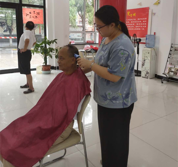 关爱弱势群体。汪嘉瑞在协助开展助学活动的同时,也协助开展了关爱孤寡老人的活动。谈及近期的活动经历,她觉得给街道里的老人理发最令她觉得难忘。“我挺紧张的,怕剪出来瞅着奇怪。”汪嘉瑞笑道,“但是爷爷们鼓励我,笑着跟我说没关系,我也就慢慢放松了。”爷爷们的理解和宽慰给了汪嘉瑞信心,而她的细心、体贴和技艺也获得了四位老人的认可和好评。