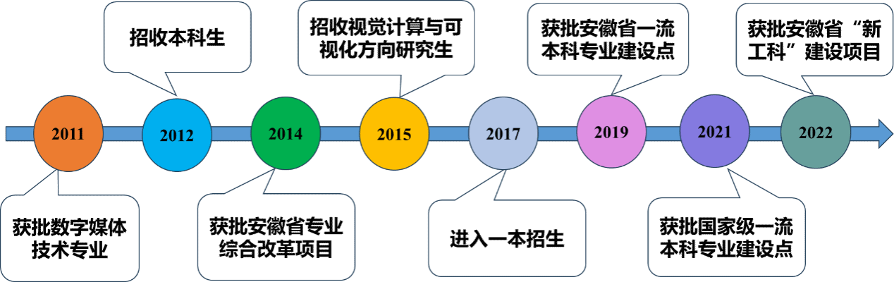 bat365中文官方网站数字媒体技术是国家级一流本科专业建设点。该专业2012年开始招生,2014年获批安徽省专业综合改革项目;2017年开始一本招生,是bat365中文官方网站首批进入一本招生专业;2019年数字媒体技术专业获批安徽省一流本科专业建设点,2021年获批国家级一流本科专业建设点。