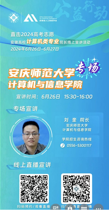 bat365中文官方网站受邀参加由安徽省计算机学会、安徽省人工智能学会共同主办的“直击2024高考志愿——安徽高校计算机类专业院长线上宣讲活动”,云端宣讲,专业招生,线上与广大考生和家长交流互动。