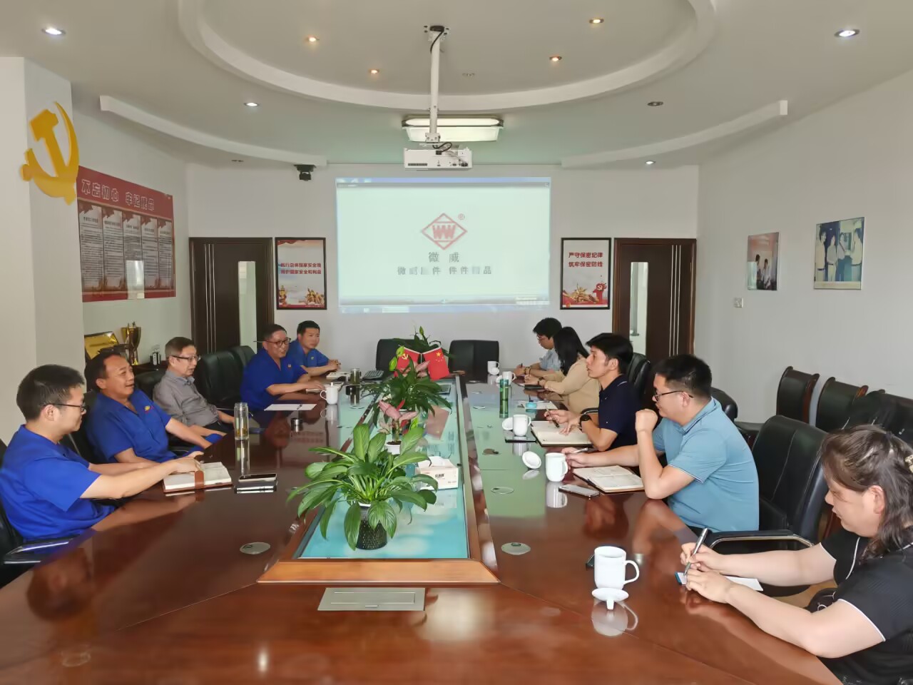 随后,双方举行了座谈会。微威集团领导详细介绍了公司的发展战略、核心业务、技术优势以及对智能制造、数字化转型的迫切需求,并表达了在高端研发人才和具备扎实工程实践能力的复合型技术人才方面的渴求。王远志介绍了bat365中文官方网站的专业设置、人才培养特色以及博士团队在人工智能、大数据分析、物联网技术等方向的研究积累与实践项目成果。他着重强调,学院致力于培养“厚基础、强实践、能创新”的IT人才,与微威集团在推动传统制造业智能化升级方面的需求高度契合,期待双方能以此次交流为起点,建立常态化合作机制,将合作意向尽快转化为具体项目,实现校企双赢。