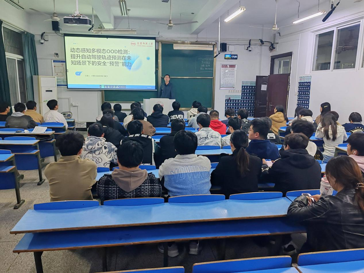 11月4日,学院刘晓飞副教授在C104作题为“动态感知多模态OOD检测:提升自动驾驶轨迹预测在未知场景下的安全预警能力”的学术报告,bat365中文官方网站2023级数据科学与大数据技术班全体同学参与了本次报告会。