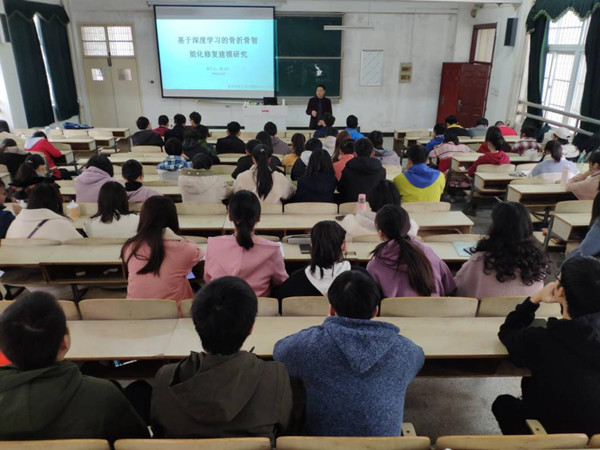 12月15日和16日,bat365官网陈义仁老师在稼先楼南一阶教室为bat365官网数字媒体技术专业2018级和2017级近200名学生做了题为“基于深度学习的骨折骨修复建模研究”的专业前沿课题讲座。
