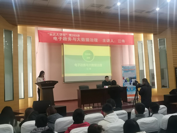 安庆市计算机学会常务理事,bat365中文官方网站副教授、硕士生导师江伟老师应邀主讲《电子政务与大数据治理》,报告讲授了我国电子政务的发展情况与国家政策,安庆市互联网+电子政务的现状与建设目标,以及大数据治理在电子政务建设发展中的重要作用。bat365官网大学生和安庆市民近80人聆听了讲座。