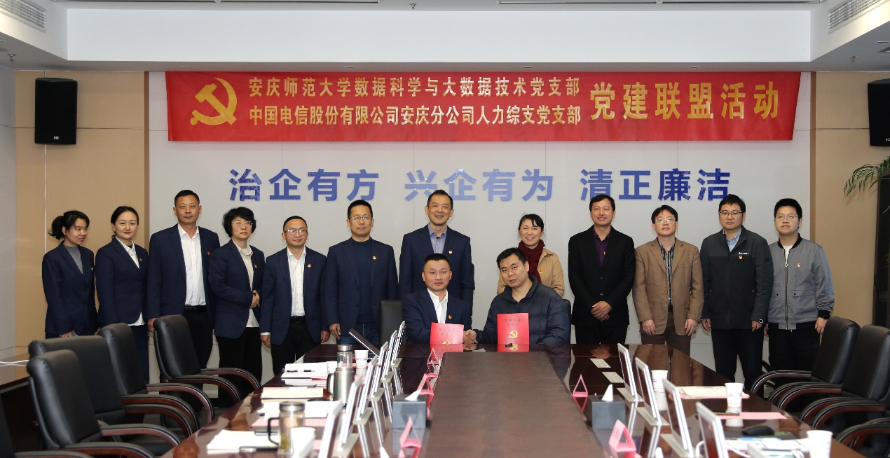 党课结束后,双方围绕党建共建机制、实习实训基地建设、联合科研项目申报、智慧校园建设等议题展开热烈交流。数据科学与大数据技术教师党支部与安庆电信人力综支党支部现场签署党建合作协议。