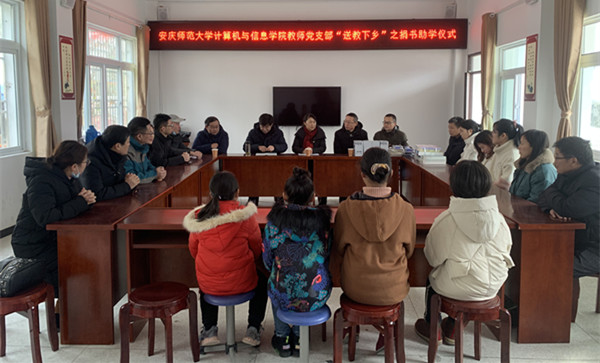 12月14日,bat365官网教师党员在党委书记陈银凤的带领下赴太湖县西冲村开展结对扶贫慰问和“送教下乡”主题活动,为结对的困难群众送温暖,在乡村学校通过支部结对开展以捐书助学、教授博士进课堂等为内容的“送教下乡”活动。