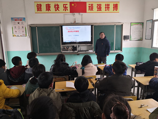 在马庙小学,学院三个教师党支部联合开展了“送教下乡”主题活动。活动中结对支部进行了座谈交流,支部联合捐书助学设立了爱心图书角,现场慰问了留守儿童,教授博士走进小学课堂,对学生们进行了网络安全教育、程序设计基础知识普及等。座谈会上,学院教师第三党支部书记江晋剑介绍了两支部结对一年来的工作进展及成效,朱河小学党支部书记朱俊峰对bat365中文官方网站为学校教育发展提供的支持表示感谢,双方就后期的结对工作进行了深入交流。陈银凤一行参观了马庙小学图书室,并在现场设立了bat365中文官方网站bat365中文官方网站爱心图书角,持续开展了捐书助学活动,并为留守儿童送上了学习及体育活动用品。教师第一党支部书记江克勤教授和支委刘德阳博士给小学生上了两堂别开生面的课——《程序设计基础知识普及》、《网络安全知识教育》,现场孩子们踊跃发言,气氛热烈,接受了网络安全教育及计算机相关知识的普及,孩子们的学习兴趣得到有效激发。