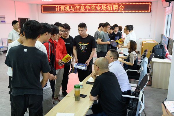 招聘会现场,即将毕业的同学们满怀热情,在现场与企业工作人员展开了交流,充分了解公司的招聘岗位、岗位要求、薪资待遇等方面情况。本次专场招聘会,三家科技企业共提供近20个工程师类岗位,涉及计算机科学与技术、大数据、人工智能、数字媒体和物联网工程等多个专业,并现场对参加招聘会的毕业生进行了面试。
