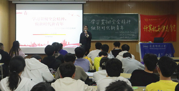 “党的十九届六中全会是什么时候召开的?”“十九届六中全会通过的决议是历史上第几次重大决议?”……4月6日,学院邀请了“青年新声”宣讲团于L314教室开展“学习贯彻全会精神,做新时代新青年”主题宣讲。学院第二期“青马班”全体学员、2021级各班级团支书共55人参加了宣讲会。