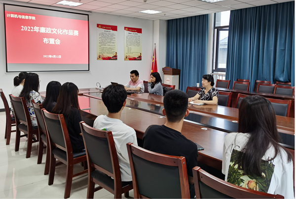 为深入学习贯彻习近平总书记关于党风廉政建设、廉洁文化建设等重要论述,发挥专业优势创作高质量高水平廉洁文化作品,营造风清气正的育人环境,助力学校廉洁文化建设,6月12日,学院教师第四党支部、数字媒体与技术教研室在L楼318召开了2022年廉政文化作品赛布置会,学院党委书记陈银凤出席了会议,教师第四党支部委员胡小平、教研室部分教师和参赛学生代表参加了会议,会议由教研室主任艾列富博士主持。
