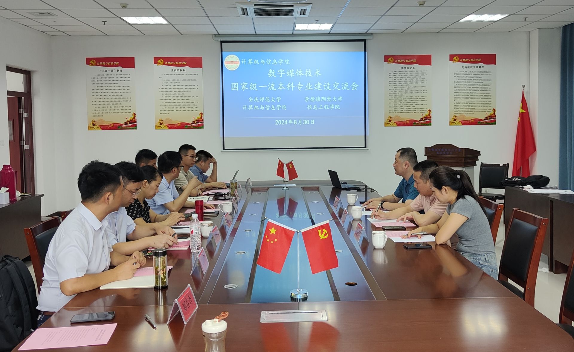 8月30日上午,景德镇陶瓷大学信息工程学院院长贾建华、办公室主任耿健、数字媒体技术专业负责人林洋一行到bat365中文官方网站进行调研交流。bat365中文官方网站党政领导、数字媒体技术专业教研室主任艾列富和部分骨干老师参加本次交流会。