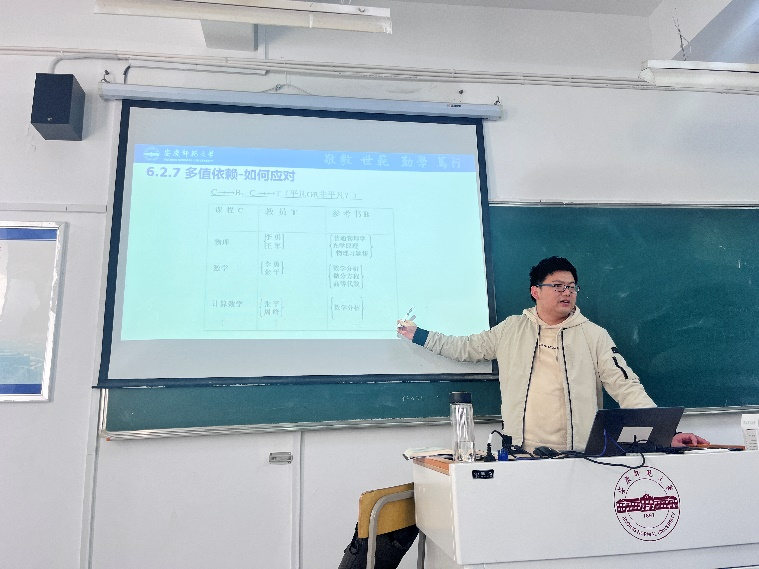 汤庆丰老师首先回顾了规范化过程中涉及的基本概念和理论知识,接着引入了多值依赖的定义和内涵,最后介绍了数据依赖的公理系统。在整个教学过程中,汤庆丰老师授课精神饱满、思路清晰、风趣幽默,巧妙地将书本知识与实际生活紧密结合,并积极与学生互动,课堂气氛活跃。课后,听课教师们对本次公开课进行了点评与交流。