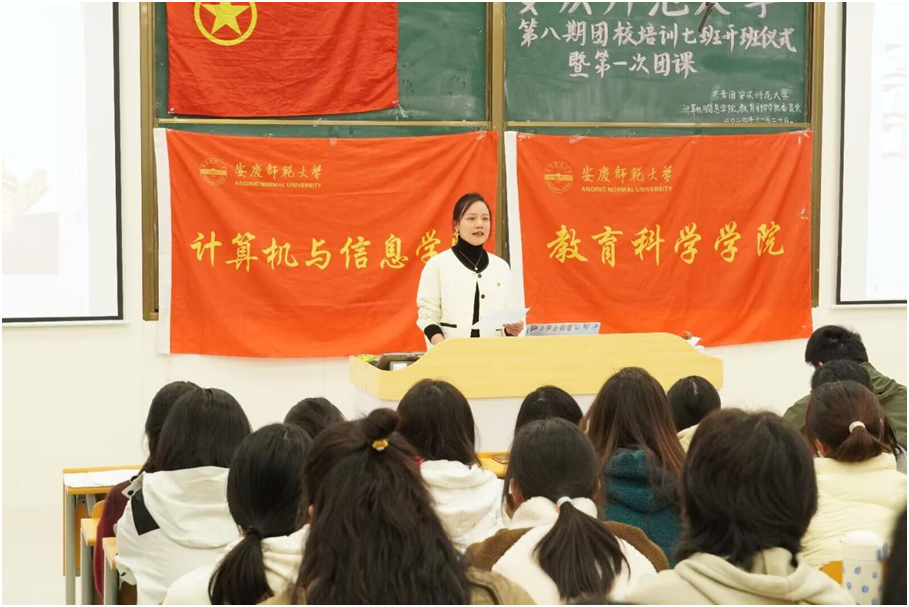 开班仪式在庄严的国歌中拉开帷幕。教育科学学院团委负责人首先向全体学员表示衷心的祝贺,并介绍了中国共产主义青年团的历史发展与现实意义。她向参加团课的学员提出三点要求:端正学习态度,以高度的责任感与使命感认真对待每一次团课的学习;注重理论学习与实际实践相结合,在学习相关理论与政策方针的同时积极参加社会实践,做到知行合一;提高个人思想政治素质,发挥模范带头作用,增强青年自身的责任感与使命感,努力成长为有理想,敢担当,能吃苦,肯奋斗的新时代好青年。