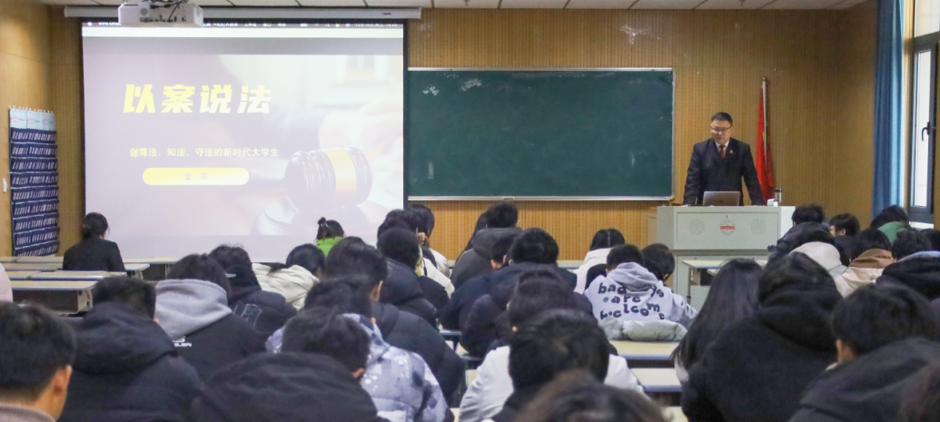 金京通过“以案说法”的形式,详细为学生们介绍了电信网络信息诈骗的具体案例,讲解了个人信息保护、高空抛物等内容,列举了有关酗酒、考试作弊的相关危害,并利用司法实务案例对当前的高利校园贷、校园欺凌等现象进行普法教育。他还结合工作经历和“六尺巷”精神为学生们讲解网络信息化应用的相关内容,鼓励学生们将“六尺巷”精神与学习、生活紧密结合,不断增强法律意识、道德意识。