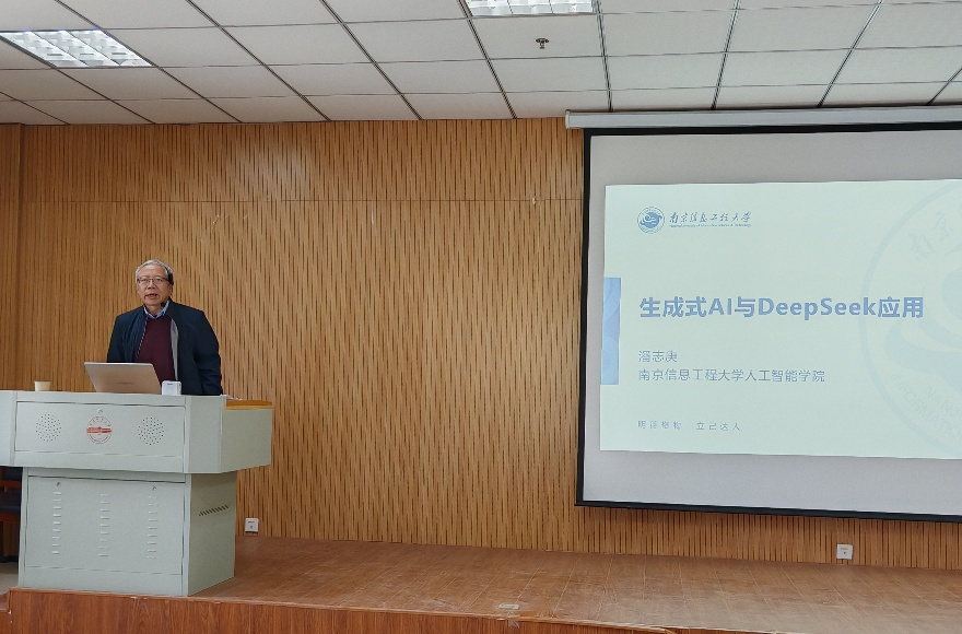4月14日下午,南京信息工程大学潘志庚教授应邀来bat365官网作题为“生成式AI与DeepSeek应用”的学术报告。报告会由王远志院长主持,吸引了众多师生参与,现场气氛热烈。
