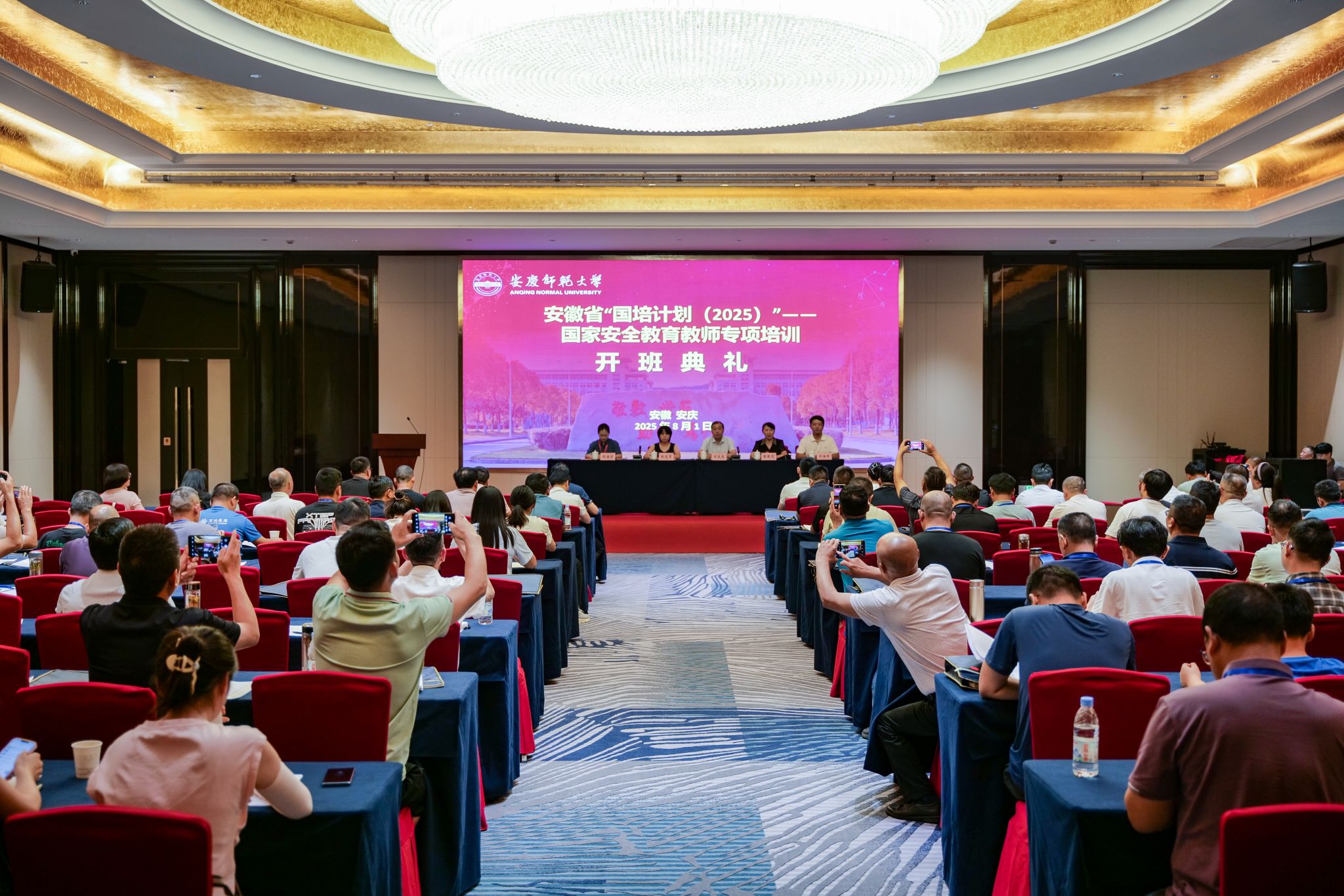 8月1日下午,bat365官网举行安徽省2025年“国培计划”国家安全教育教师专项培训(第一期)开班典礼。校党委常委、副校长刘友忠出席开班典礼。继续教育学院相关负责人、bat365中文官方网站领导班子,第一期参训全体学员200人参加开班典礼。开班典礼由bat365中文官方网站主要负责人主持。