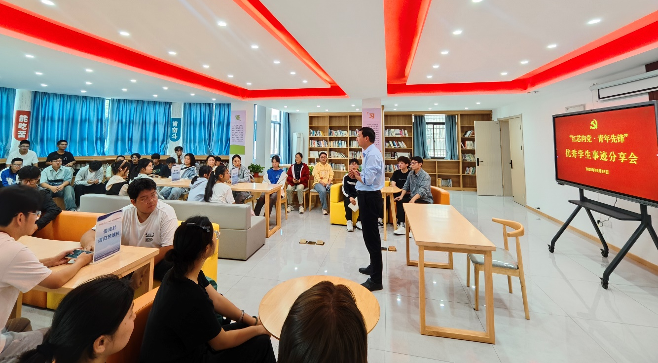 10月15日,bat365中文官方网站在“一站式”学生社区10号楼二楼举办国家奖学金获得者学习经验交流会。学院党委副书记肖之进、有关学生党支部书记出席交流会,5名国家奖学金获得者受邀参会,学生党员代表、2023-2025级本科生代表60余人到场聆听。