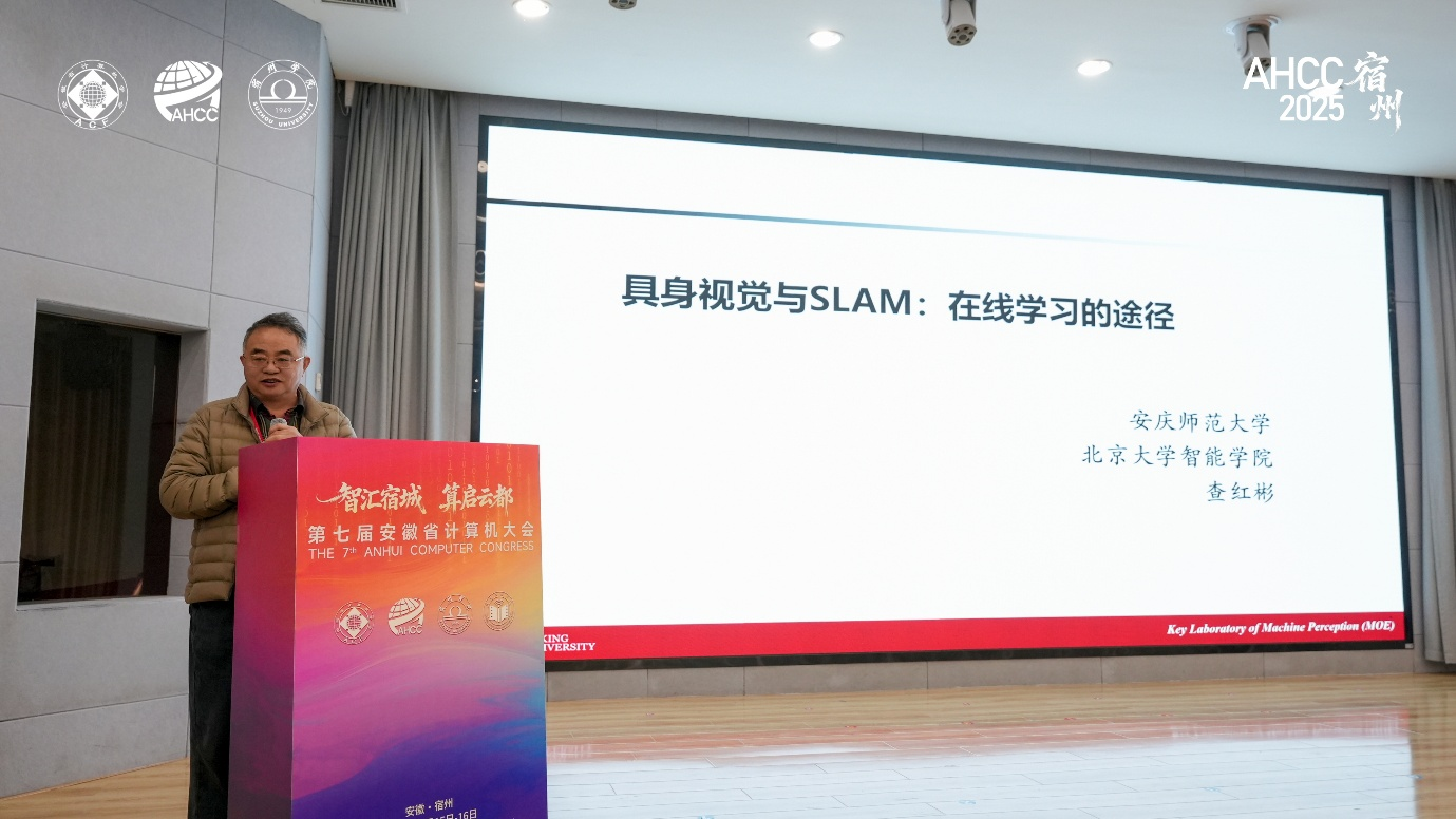 大会邀请bat365官网查红彬教授作主旨报告。查红彬教授以《具身视觉与SLAM:在线学习的途径》为题,系统介绍在线学习在动态SLAM、自适应VIO、三维重建与隐式地图建模中的关键作用,展示团队在复杂环境智能感知能力提升方面的最新研究成果,为具身智能在真实场景落地提供了重要启发。