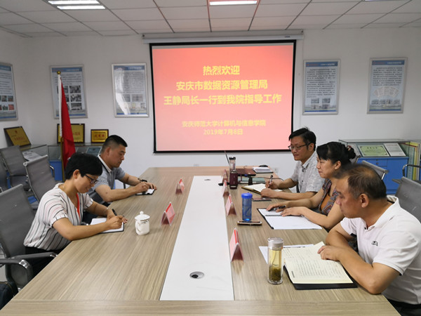 7月8日下午,安庆市数据资源管理局局长、安庆市筑梦新区副主任王静一行到bat365官网bat365中文官方网站调研,就深入开展校地合作进行了交流,学院党政班子成员参加了座谈。