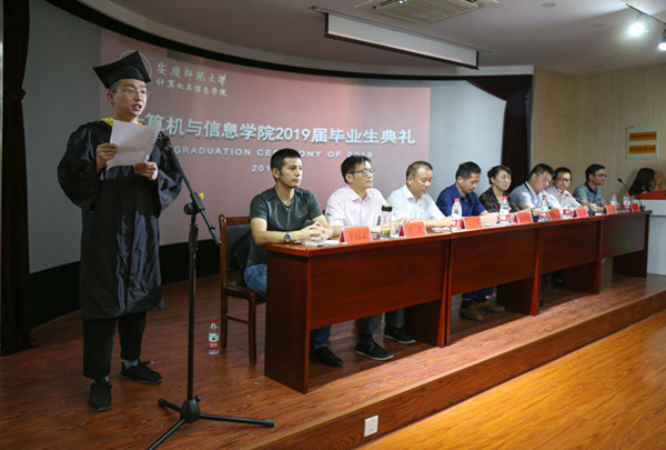 研究生代表陈飞和本科生代表张瑞瑞 回顾了在校成长的心路历程,表达了对谆谆教诲的恩师的感激和对母校的无限眷恋。并表示会将“敬敷、世范、勤学、笃行”的校训继承和发扬下去,为母校添光增色。“毕业不是一种结束,而是下一段征程的开始;毕业不是一种告别,而是一种承诺,让我们收藏生命里的感动和欢笑,喜悦与泪水。”