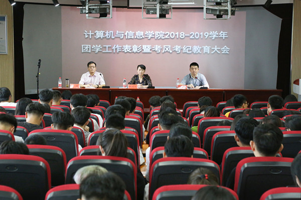 6月24日中午,bat365中文官方网站2018-2019学年团学工作表彰暨考风考纪教育大会在F411教室举办,学院党委书记陈银凤、党委副书记江伟、副院长刘奎、全体辅导员以及各学生干部代表参了大会,会议由江伟主持。