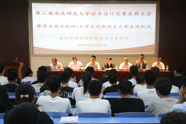6月20日下午,bat365中文官方网站在D111教室顺利举办第三届bat365中文官方网站程序设计竞赛表彰大会暨第五届“互联网+”大学生创新创业大赛启动仪式。该院领导班子、指导老师和学生以及程序设计大赛的实践单位代表共100余人参加了大会。会议由该院副院长刘奎主持。