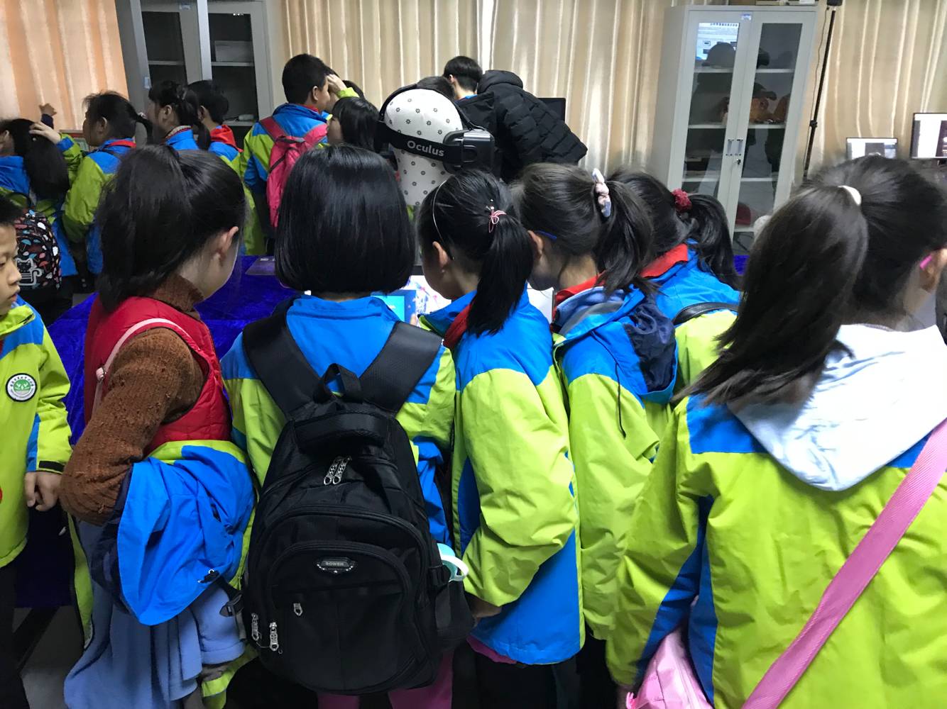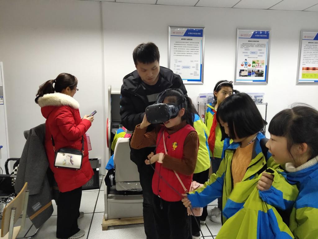 本次活动重点对实验室团队在“STEAM教育”层面、“文化计算”层面的探索成果进行了展示。活动开始前,菱北小学的小朋友们就对此次参观活动表现的非常激动与兴奋。在活动正式开始后,小朋友们对实验室里各种新奇的设备充满了好奇与浓厚的兴趣,争相体验当今世界最前沿的科技:虚拟现实交互实验。陪同来访的小学教师们也纷纷表示,希望有关这些科技的知识能够早日走进小学的课堂,使孩子们从小就对科学充满幻想,为国家培养更多创新型人才。在活动期间,bat365中文官方网站的志愿者们也是为小朋友们展示了如何使用这些设备,现场气氛十分活跃,欢声笑语不断。最后,小朋友们和学院志愿者们合影留念。