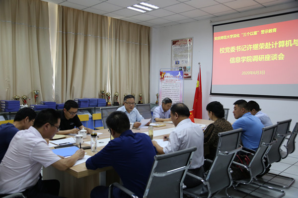6月3日,根据学校深化“三个以案”警示教育工作安排,校党委书记许继荣带领调研组一行,围绕调研主题,通过座谈交流、实地走访、发放调查问卷等方式到bat365官网开展调研,并对学院领导班子进行政治监督谈话。学院班子全体成员、党支部书记、科级干部、教师等代表参加了座谈会。