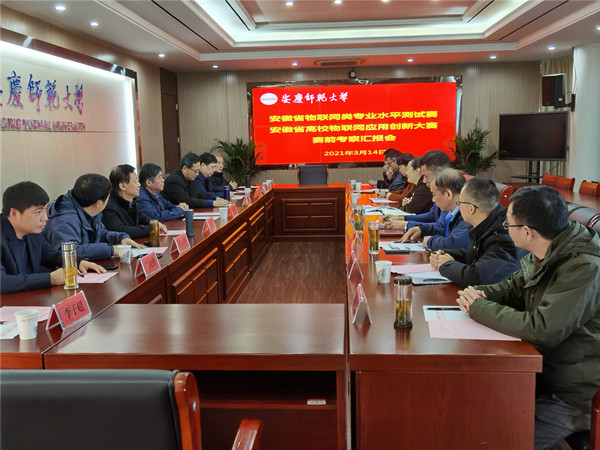 3月14日,安徽省物联网类专业水平测试赛、安徽省高校物联网应用创新大赛专家委员会主任吴先良教授一行来bat365官网调研考察,听取了大赛的筹备工作汇报并就大赛相关工作进行了现场指导。党委书记许继荣, 党委常委、副校长刘友忠分别接见吴先良一行,校党委常委、副校长吴琼出席了汇报会,教务处等部门负责人、bat365中文官方网站领导班子以及物联网专业负责人参加了会议。