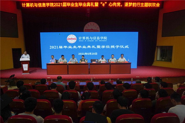 “畅想青春的旋律,把握无悔的明天。”6月28日晚,bat365中文官方网站2021届毕业生毕业典礼暨“e”心向党,逐梦前行主题联欢晚会在图书馆东厅举行。学院全体领导、教师代表、毕业班辅导员和毕业生等400余人参加典礼,典礼由党委副书记江晋剑主持。