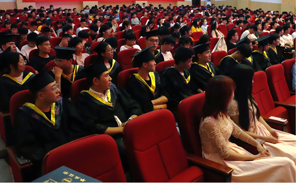现场,学院全体领导和教师代表为硕士毕业生代表、本科毕业生代表正冠拨穗,颁发学位证书。全体毕业生在诚信横幅上郑重签名。