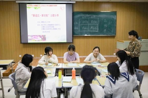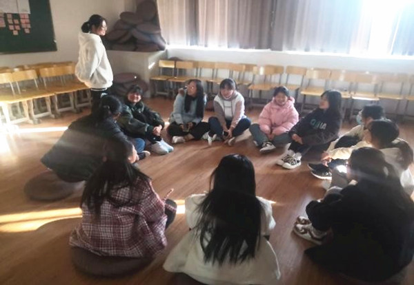 8人围成一圈,前后搭着彼此的肩膀,大喊3遍“你真棒”……4月9日下午,敬敷女生工作坊开展“新适应·新启航”主题素质拓展单元活动,通过游戏互动与交流分享的形式,让成员们更好地认知自我,增强自信。