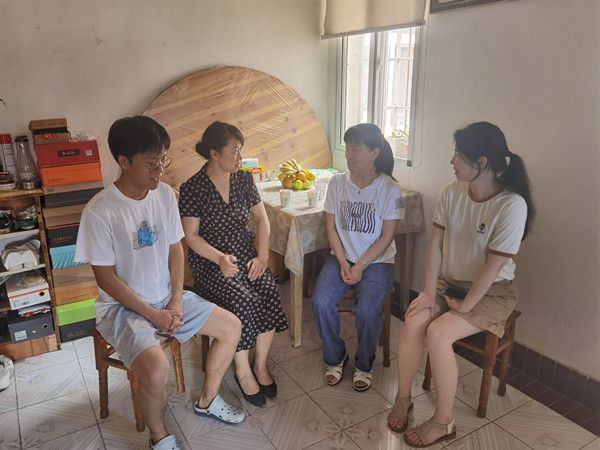 走访组一行深入困难生家庭,亲切地与学生及家长进行交流,详细了解了学生家庭经济状况、家庭成员身体状况、在校学习情况以及暑假期间安排等,认真听取了学生及其家庭目前面临的困难,向学生家长介绍了党和政府的相关政策,反馈了学生在校表现情况。交谈中,走访组一行鼓励学生发扬艰苦奋斗的精神,引导学生树立正确的就业观,做好考研备考和就业择业两手准备,同时对学生考研、学习、就业等提出了建议。家长们感谢国家和学校的好政策,感谢学校和老师对孩子的关心,感谢老师们冒着烈日酷暑、不辞辛苦来到家中看望。受访学生亦表达了对学校和老师的感激之情,并立志以更积极的心态面对学习、工作和生活,以优异的学习工作成绩、扎实的专业能力和出色的工作业绩回馈学校和社会。
