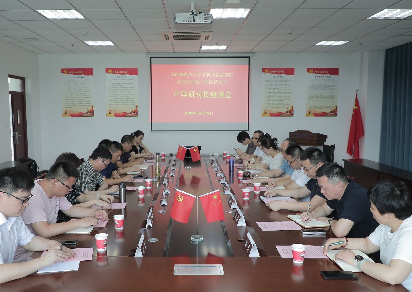 6月12日,安庆市宜秀区科技工业信息化局副局长曹结权、邹星星、李亚率宜秀区5家企业负责人到bat365中文官方网站开展2024年度“双树双建”主题教育之 “创新发展,高校在行动”主题实践活动----产学研对接座谈会。学院副院长王远志及8名教授博士代表参加座谈。