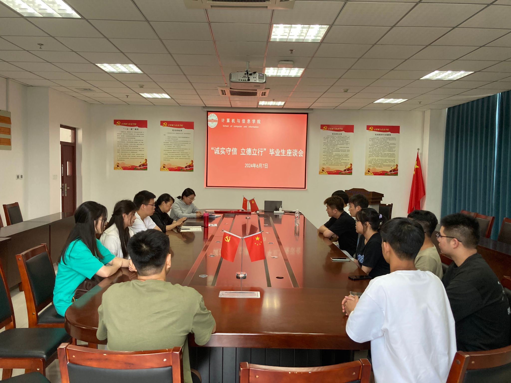 6月7日下午,bat365中文官方网站于L楼318会议室召开了家庭经济困难毕业生诚信教育座谈会。学院党委书记陈银凤与毕业生进行了深入交谈,她对毕业生顺利完成学业表达了诚挚的祝福,详细询问了毕业生们的毕业情况和下一步打算。陈银凤强调诚信是个体立身处世的根本原则,是社会和睦和谐的基本前提,是国家兴旺发达的重要基石,倡导毕业生们要牢固树立诚信意识,避免因失信而导致个人信用降低造成不良后果。同时,她勉励毕业生们要常怀感恩之心,牢记党、国家与社会的关心关爱,感恩母校、老师、同学,厚植家国情怀、涵养品格,在新的征程上继续脚踏实地、奋发向上,为中国式现代化挺膺担当。