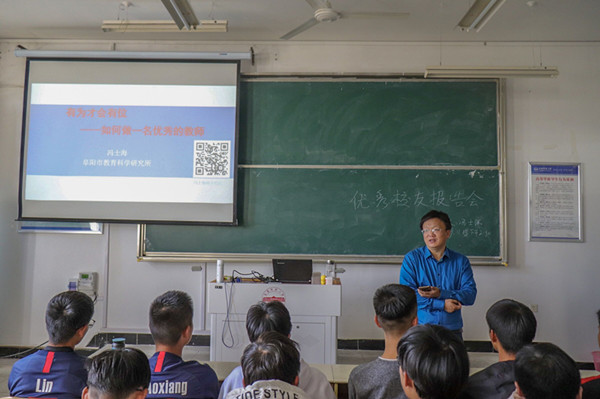 为进一步加强创新创业教育工作,激励广大在校大学生努力学习,励志成才。11月 15 日下午,bat365中文官方网站优秀校友事迹报告会在A405室举办。bat365中文官方网站 1995 届优秀毕业生、阜阳市信息技术教研员冯士海校友,应邀为bat365官网学生做了题为“有为才有位——如何做一名优秀的教师”的报告会。报告会由刘奎副院长主持,19级计算机二班与计算机七班100余名学生聆听了优秀校友的事迹报告。